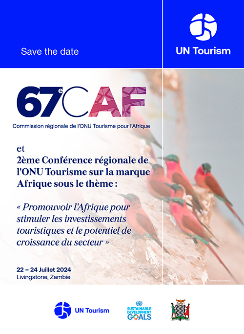 La 67ème réunion de la Commission régionale de l’ONU Tourisme pour l'Afrique et la 2ème Conférence régionale de l'ONU Tourisme sur la marque Afrique sous le thème « Promouvoir l'Afrique pour débloquer les investissements touristiques et le potentiel de croissance du secteur », se tiendra à Livingstone, en Zambie, du 22 au 24 juillet 2024. La Conférence est ouverte à la participation des États Membres et Membres affiliés de l´ONU Tourisme, et leurs délégations, des professionnels du tourisme et des experts techniques, des représentants des institutions de financement et des services financiers, des parties prenantes des secteurs public et privé qui pilotent la gestion et la transformation du secteur du tourisme en Afrique en vue de promouvoir le continent en tant que destination attrayante et compétitive à l'échelle mondiale.
