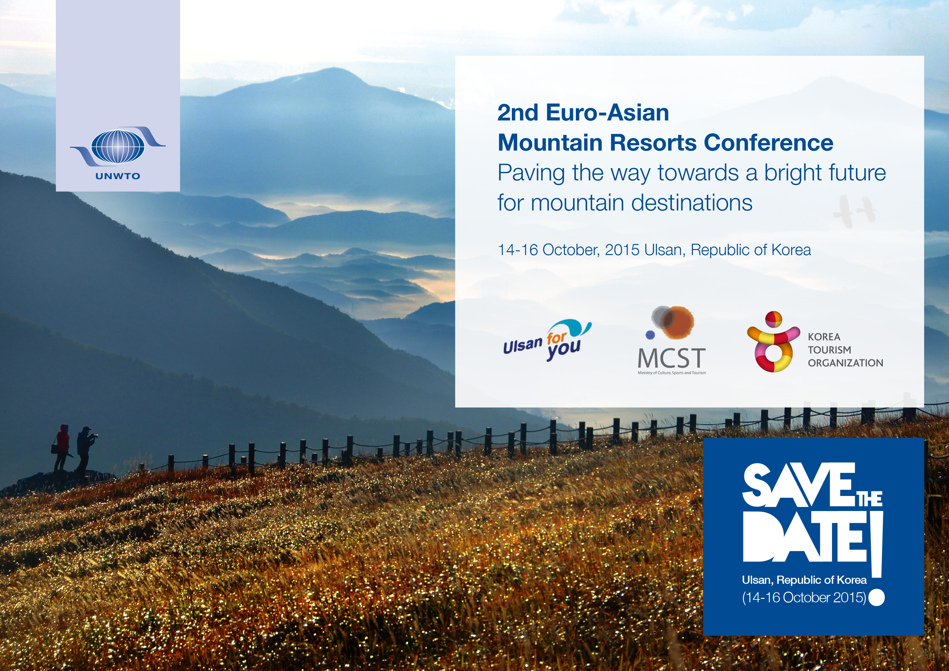 The World Tourism Organisation (UNWTO) and Ulsan Metropolitan City with support of the Government of the Republic of Korea are organizing the 2nd Euro-Asian Mountain Resorts Conference, in Ulsan, Republic of Korea (14 - 16 October 2015). Under the title “Paving the Way towards a Bright Future for Mountain Destinations” international experts will discuss current and future challenges, illustrate success stories and create once again a platform for exchange of innovative initiatives.